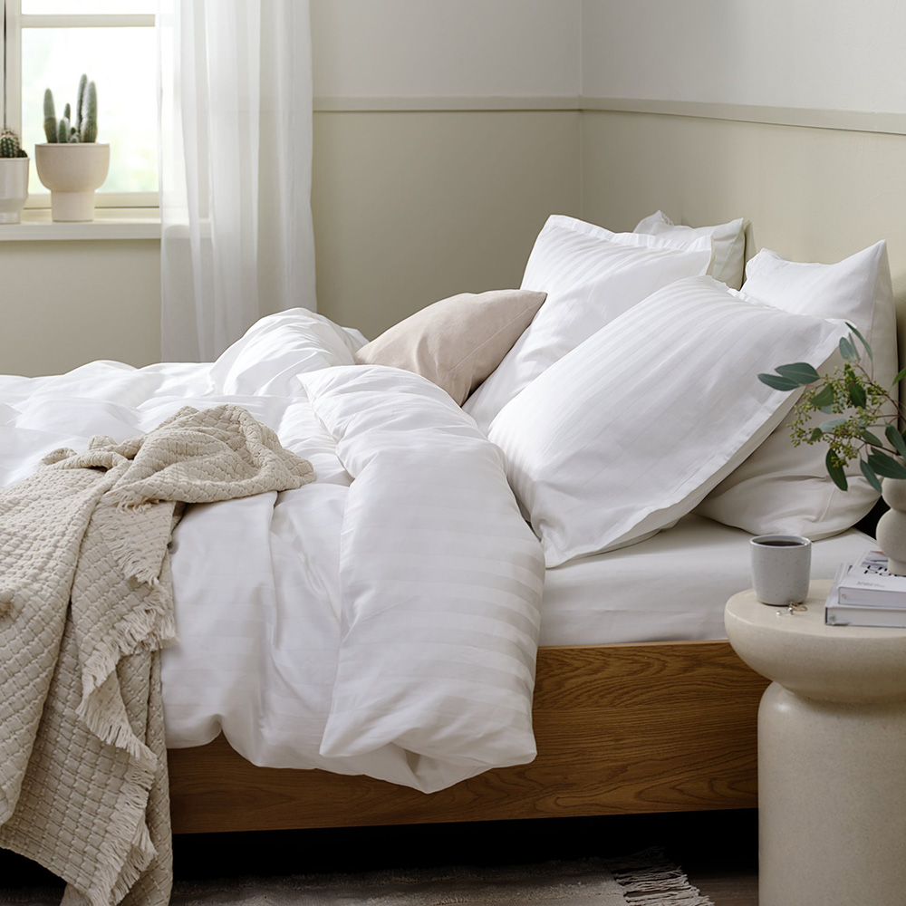 Posteljine koje pretvaraju spavaću sobu u privatno utočište, gdje Cloud Dancer izgleda poput jutarnjeg povjetarca.