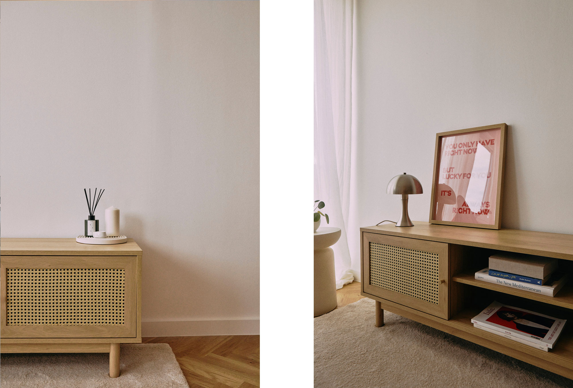 Stan – prvenstveno ta ogoljena slika ravnih ploha i oštrih rubova, kao bijelo platno koje vas čeka i pita: ”Što ćemo od ovog stvoriti?” Moram priznati da iako sam se oduvijek smatrala osobom koja zna što hoće kada se radi o estetici, ovdje sam se puno puta pitala: ”Je li to – to? Želim li da bude retro? Želim li da bude clean? Želim li isključivo slušati sebe – i što je uopće to što baš ja želim? Ili želim da ljudi koju uđu u stan uzdahnu i da se sviđa svima.”